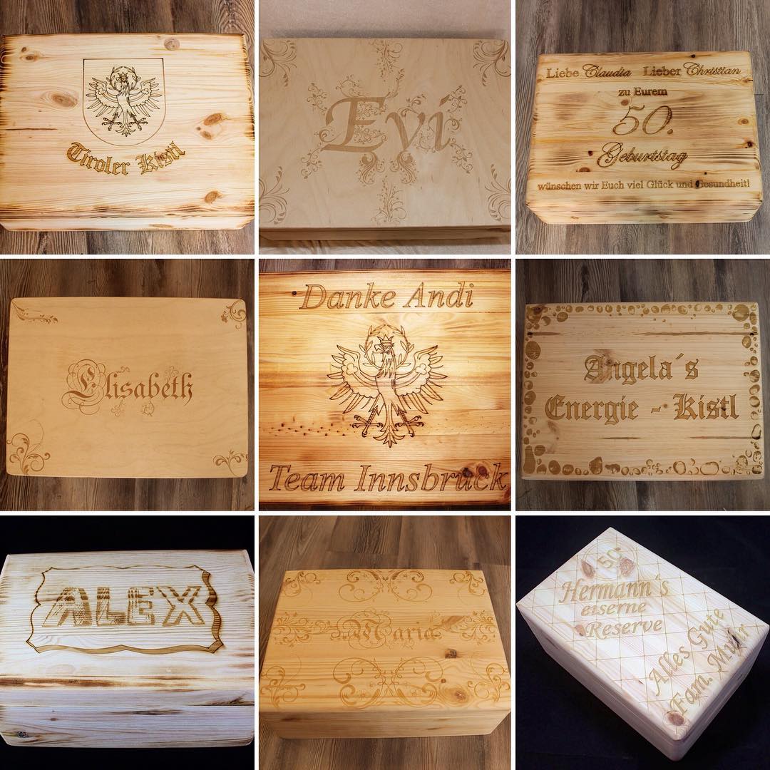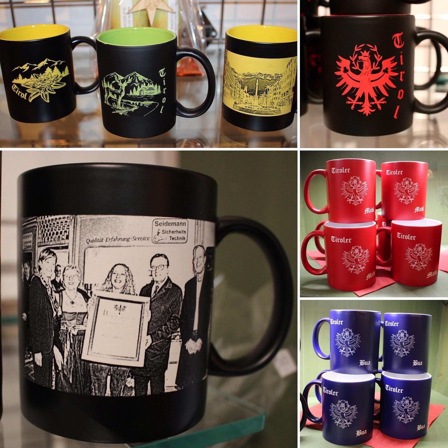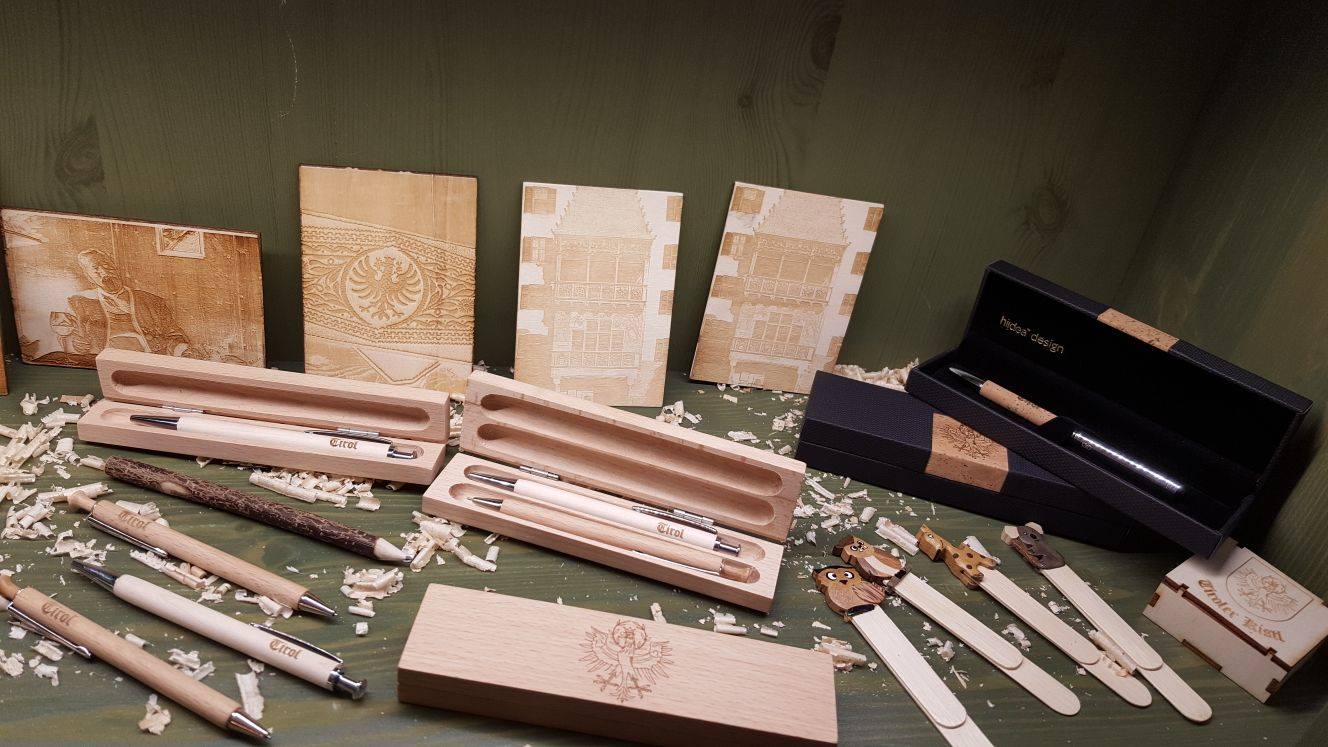 Schreibwaren - Individuell gestaltete Kistln - Tassen - Bieröffner - Geldtaschen & Feuerzeuge - Geschenksets - Gutscheine - Kleine Aufmerksamkeiten - Muttertag - Ostern - Schlüsselanhänger - Tiroler Flachmänner - Weihnachten